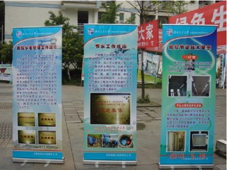 活动期间,校园内各主干道上分别悬挂了关于节约用水的宣传标语,并在校报等多方媒体积极支持下,通过多形式、多角度展开宣传,营造出了浓厚的活动气氛。